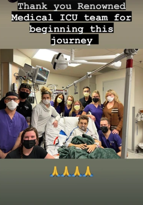 Renner újraposztolta a videót, és megköszönte a szervezetnek a születésnapi köszöntést, valamint háláját fejezte ki az őt ápoló kórházi személyzetnek is.