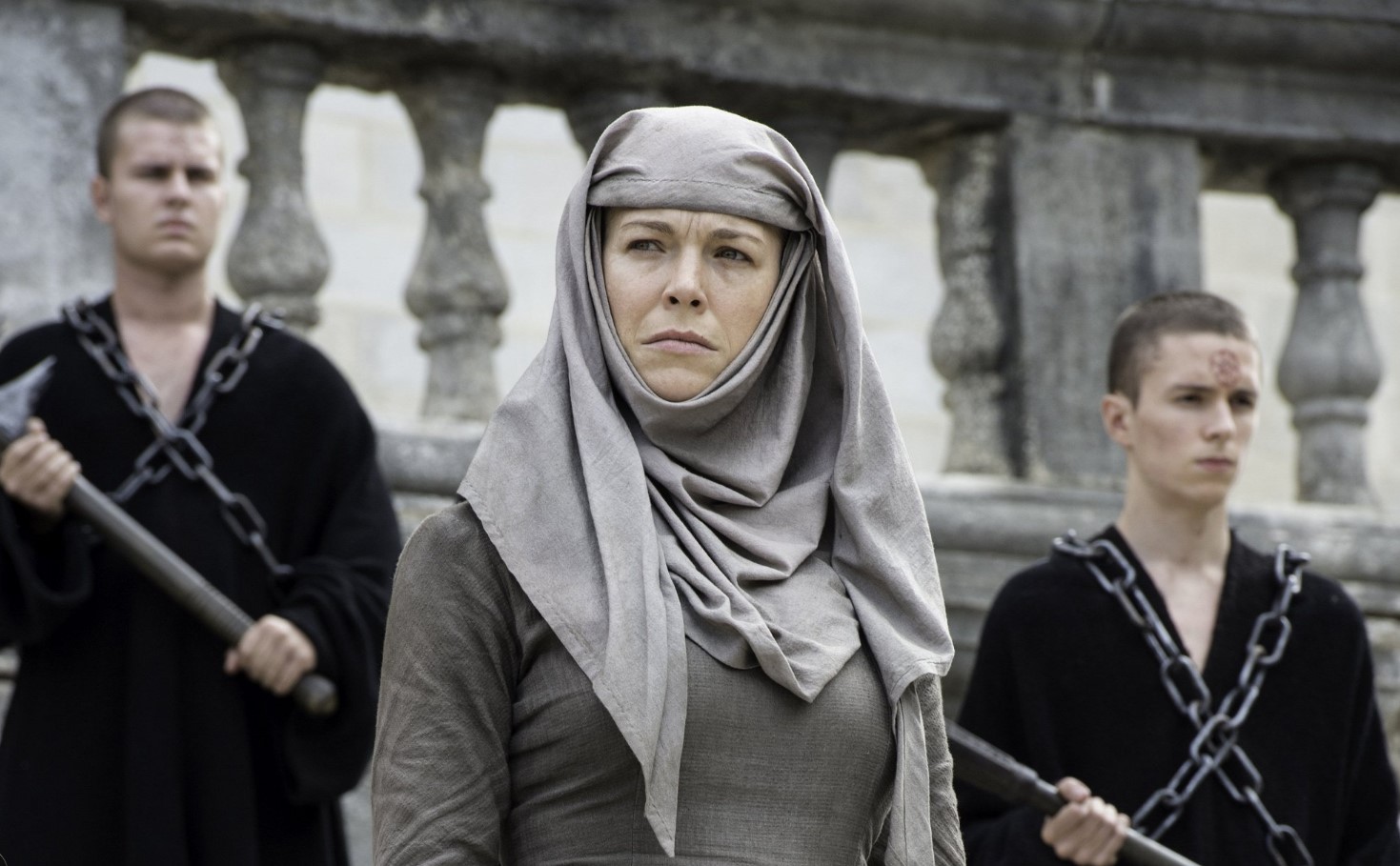 "Valaki más kérdezett erről a minap, és én azt mondtam, hogy tudod, színészként mindannyiunknak vannak határaink, vagy nincsenek határaink" - mondta Headey - "És a határok nélküliség nyilvánvalóan nagyon izgalmas, amikor elmehetsz egy helyre... de valami ilyesmi, amikor le vagy kötve [a 10 órás forgatás alatt], horrorisztikus érzéssel töltött el annál a bizonyos jelenetnél".