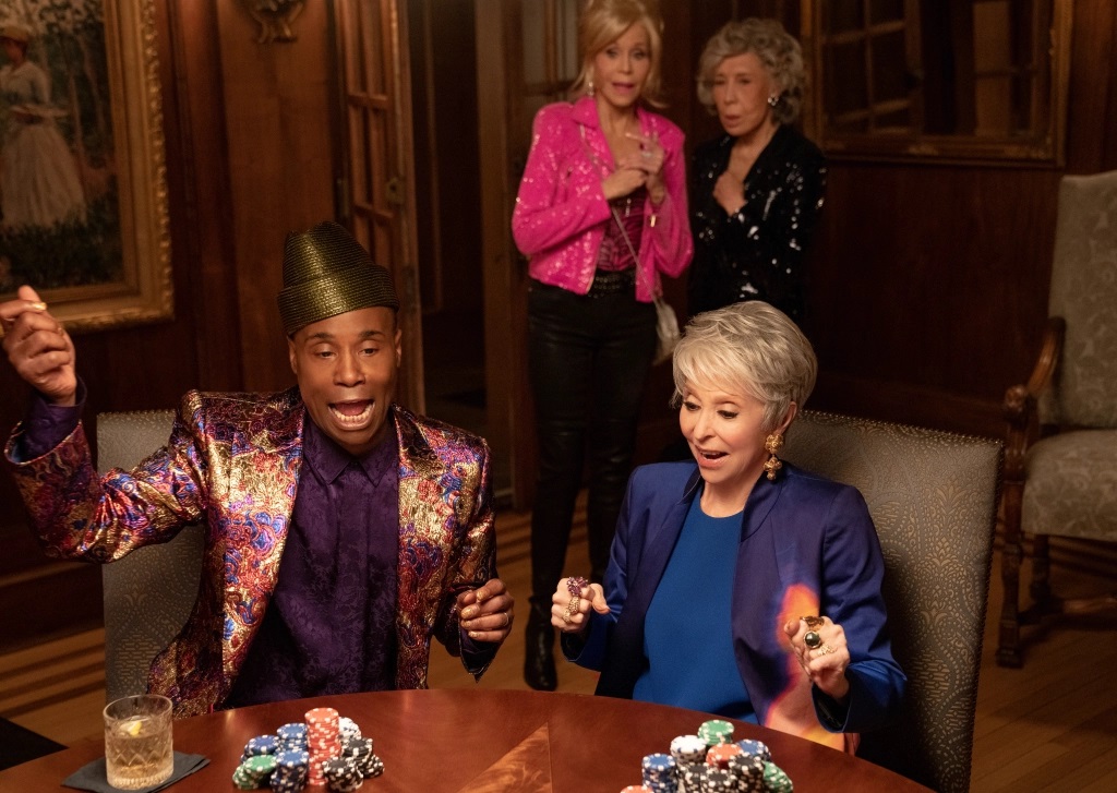 Lily Tomlin, Jane Fonda, Sally Field és Rita Moreno a Drukkernénik című film főszereplői, melyben az elismert színésznők a hátvéd után vágyakoznak.