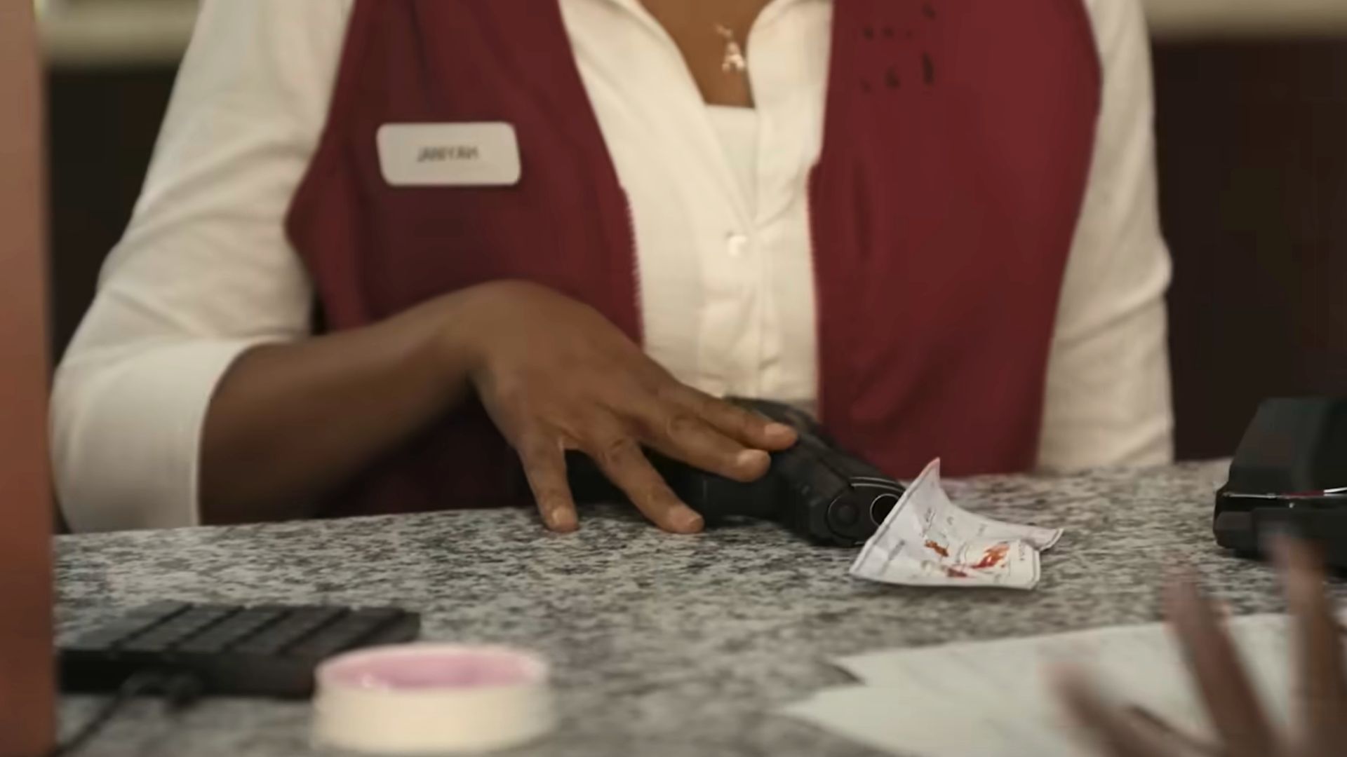 A film főszereplői Sherri Shepherd mint Nicole Parker, a Janiyah legrosszabb napjába belekeveredett, szimpatikus banki pénztárosnő, valamint Teyana Taylor mint Raymond nyomozó, aki mélyen együtt érez Janiyah helyzetével. Glynn Turman játssza Richardot, Janiyah főnökét, Rockmond Dunbar alakítja Wilson rendőrfőnököt, a nő körülményei iránt közömbös rendőrtisztet.
