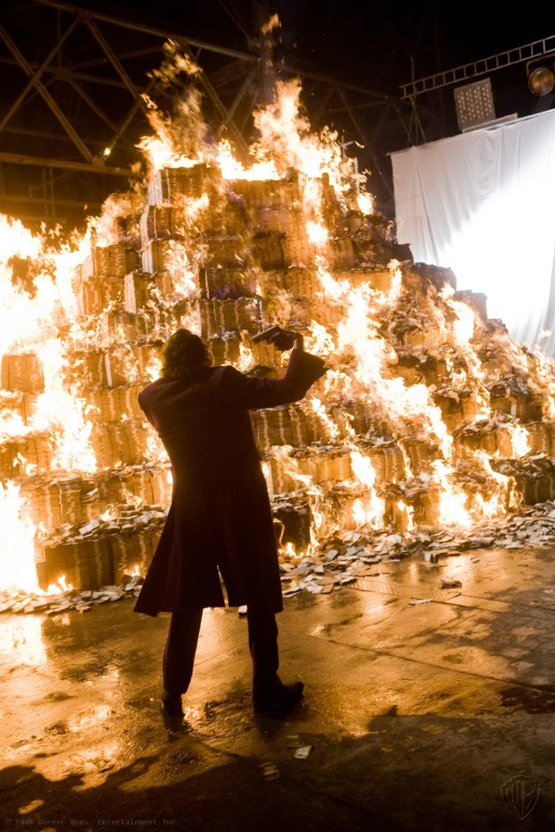 A jelenet szerint azután, hogy Joker kisétált az épületből, megnyomja a detonátort, ám az úgy tűnik, besül, a valódi robbanás pedig csak néhány másodperc múlva történik meg, mialatt a szereplő értetlenül áll az egész „kudarc” láttán.
