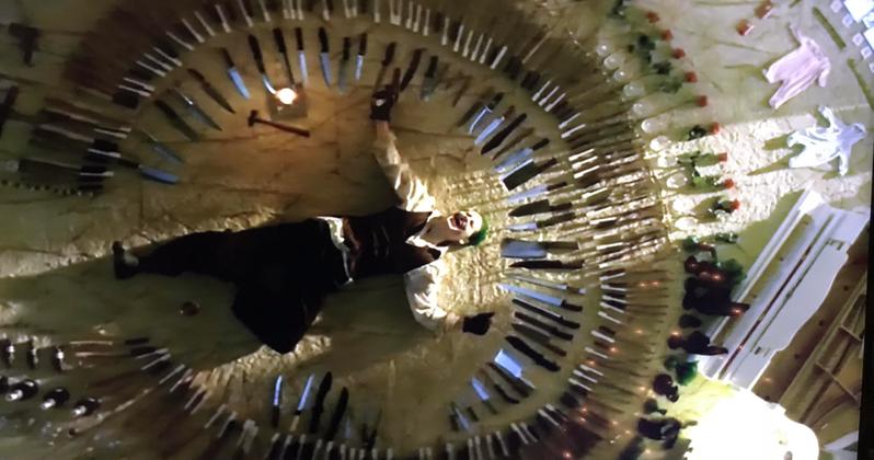 A film egyik legvitatottabb képsorai közé tartozik az a jelenet, amelyben Joker egy kör közepén fekszik, ahogy pedig távolodik a kamera úgy válik egyre kivehetőbbé, hogy a kör késekből, lőfegyverekből, virágokból, miegymásból van kirakva. A szemfülesebbek azonban azt is kiszúrták, hogy a kép legszélén bizony babaruhák is kivehetőek.