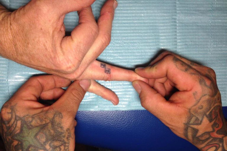 Bryan Cranston nem kifejezetten az a tetoválásgyűjtő ember, egy apró mintája mégis van a jobb gyűrűsujja belső oldalán – és mi más kapcsán került volna oda, mint a Totál szívás? A stáb épp azt ünnepelte, hogy vége van a forgatásnak, amikor az egyik stábtagról kiderült, hogy tetoválóművész is, így adta magát a dolog, hogy a színész elkészíttessen egy kis emléket arról a munkáról, ami szerinte megváltoztatta az életét.