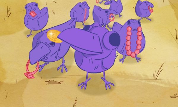 A rutinjába zárkózott Pili Mari unottan tölti napjait a parkban a madarak etetésével. Egy nap egy csapat varjú viszonozni kezdi a szívességet azzal, hogy apró ajándékokkal kedveskedik neki. Meglepődik, majd elhatározza, hogy javít az étel minőségén, és ráveszi a varjakat, hogy ők is… Több