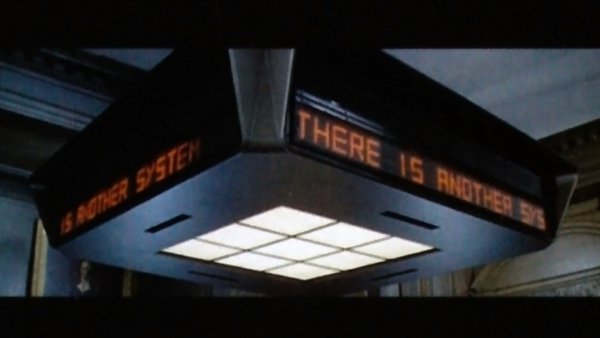 Amikor Colossus kiírja az első üzenetét, az elnök ránéz a kis monitorra, amin ez olvasható: WARN HERE IS ANOTHER SYSTEM. Ugyanekkor viszont a nagy monitoron a következő szöveg jelenik meg: WARN THERE IS ANOTHER SYSTEM.