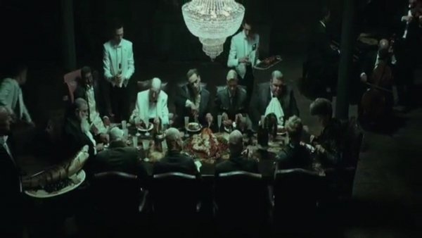 Egy pompás lakoma helyszínén vagyunk, ahol a pincérek frakkban szolgálnak fel, szolgák ugrálnak körül mindenkit. A 11 elkényeztett vendég beleveti magát az élvezetekbe, mely egy rituális gasztronómiai mészárlásra emlékeztet inkább. Ebben az abszurd és komikus világban egy váratlan esemény… Több